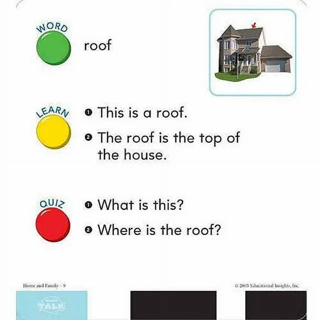 This set of 150 cards introduces a wide range of vocabulary and concepts related to home and family life. Each card features colorful illustrations and simple, clear text that encourages children to explore and understand their environment. Perfect for early learners, these cards help build essential language skills through visual and verbal reinforcement.