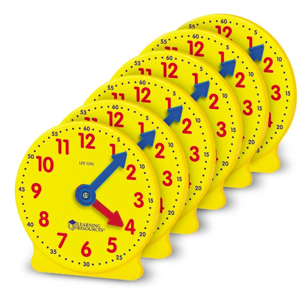 Perfect for classrooms and homeschooling, they make learning to tell time hands-on and engaging. Their compact size allows multiple students to practice simultaneously, supporting understanding of time concepts in a fun, tactile way.