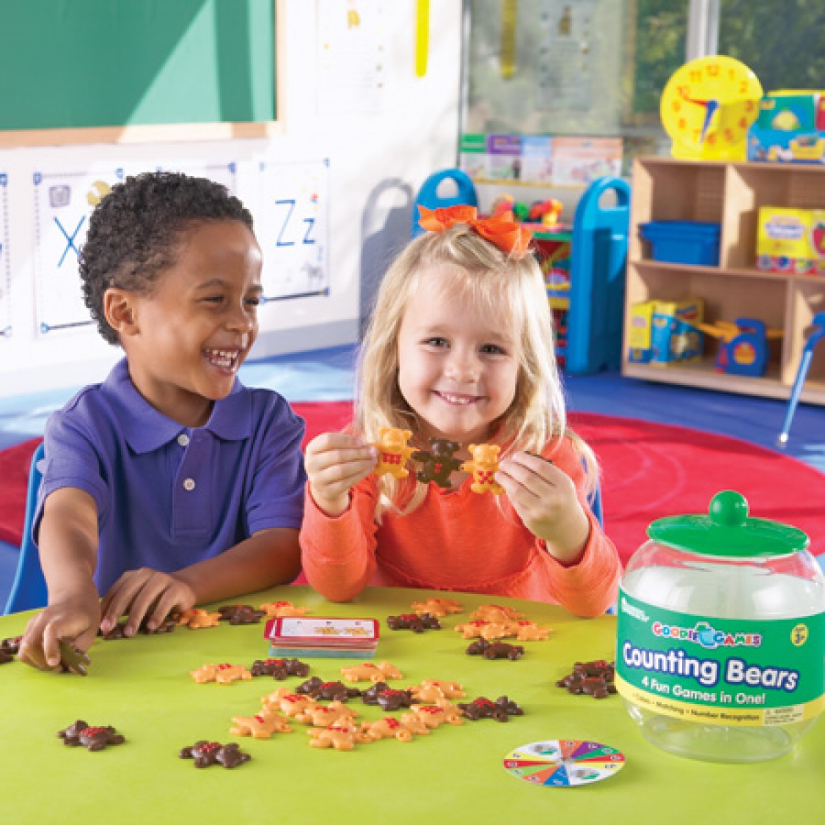 This set introduces a dynamic way to explore counting, sorting, and basic math concepts through colorful, easy-to-use bear pieces. Perfect for young learners, it encourages children to explore and learn using durable, easy-to-handle components. The Learning Resources Goodie Games Counting Bears set includes 80 colorful plastic bears in 4 different colors and sizes, along with 4 double-sided activity cards. These bears can be used for counting, sorting, and creating patterns.